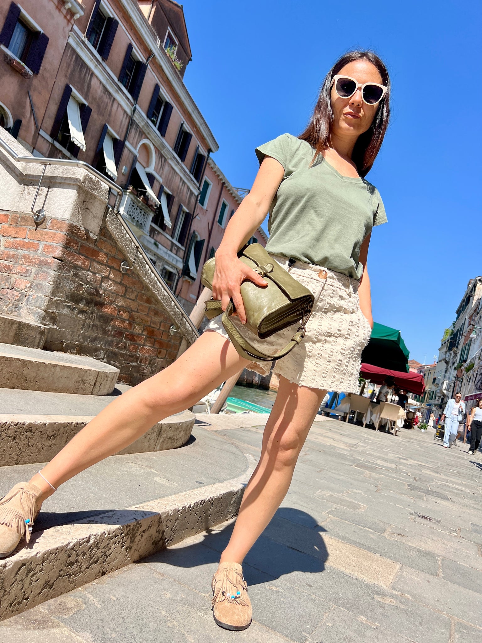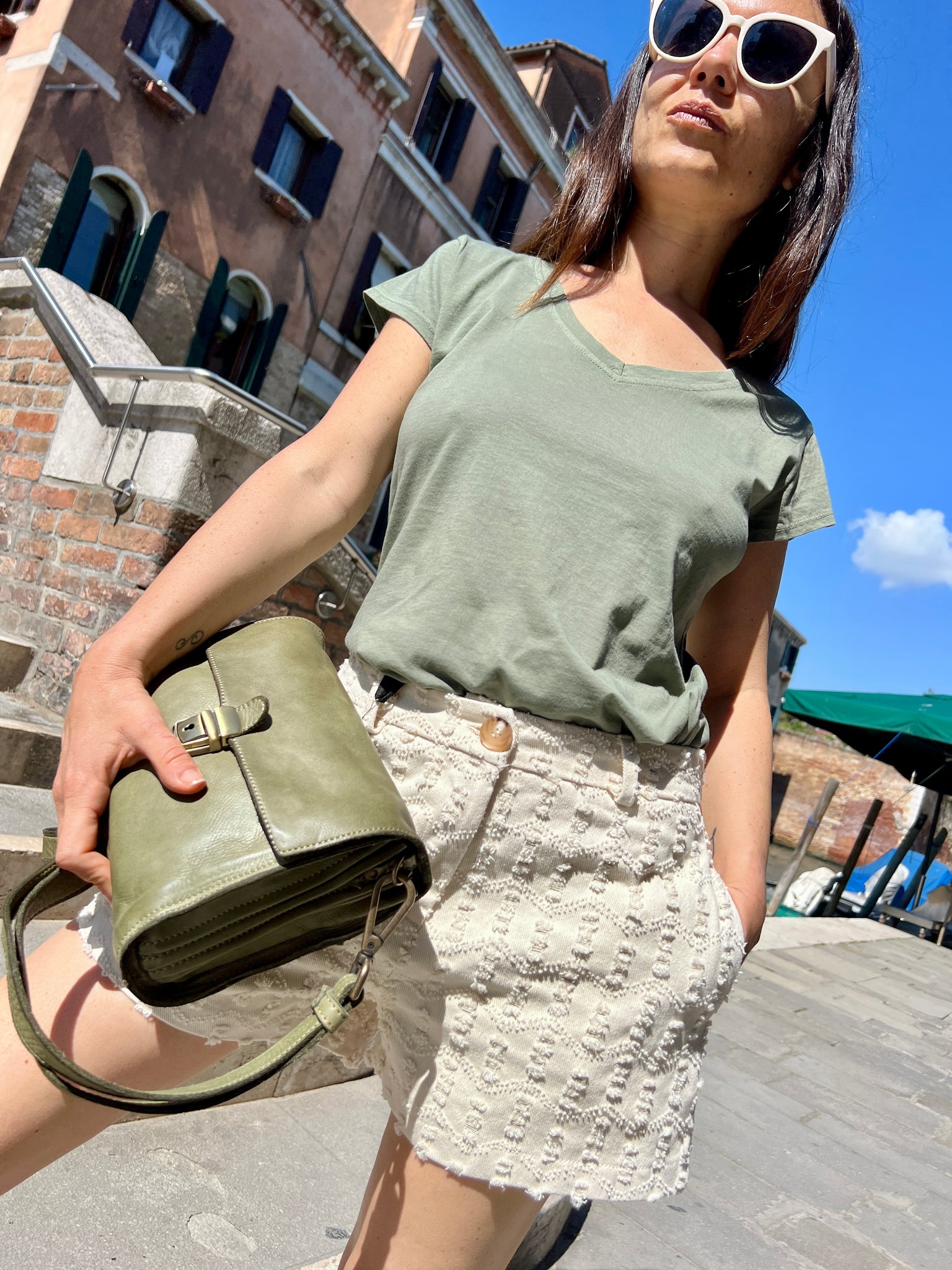 Shorts con impunture, tasche laterali e chiusura con cerniera e bottone.