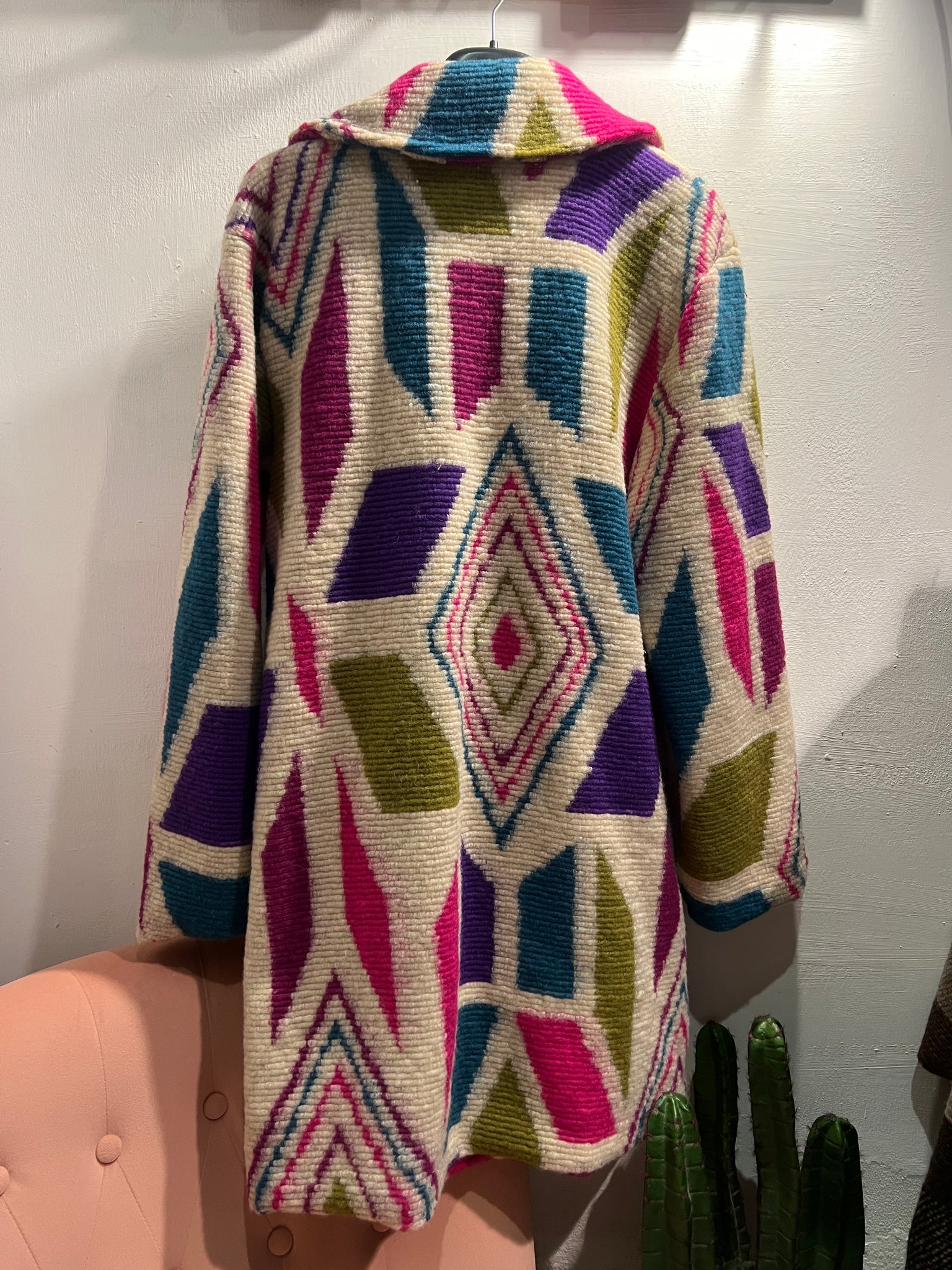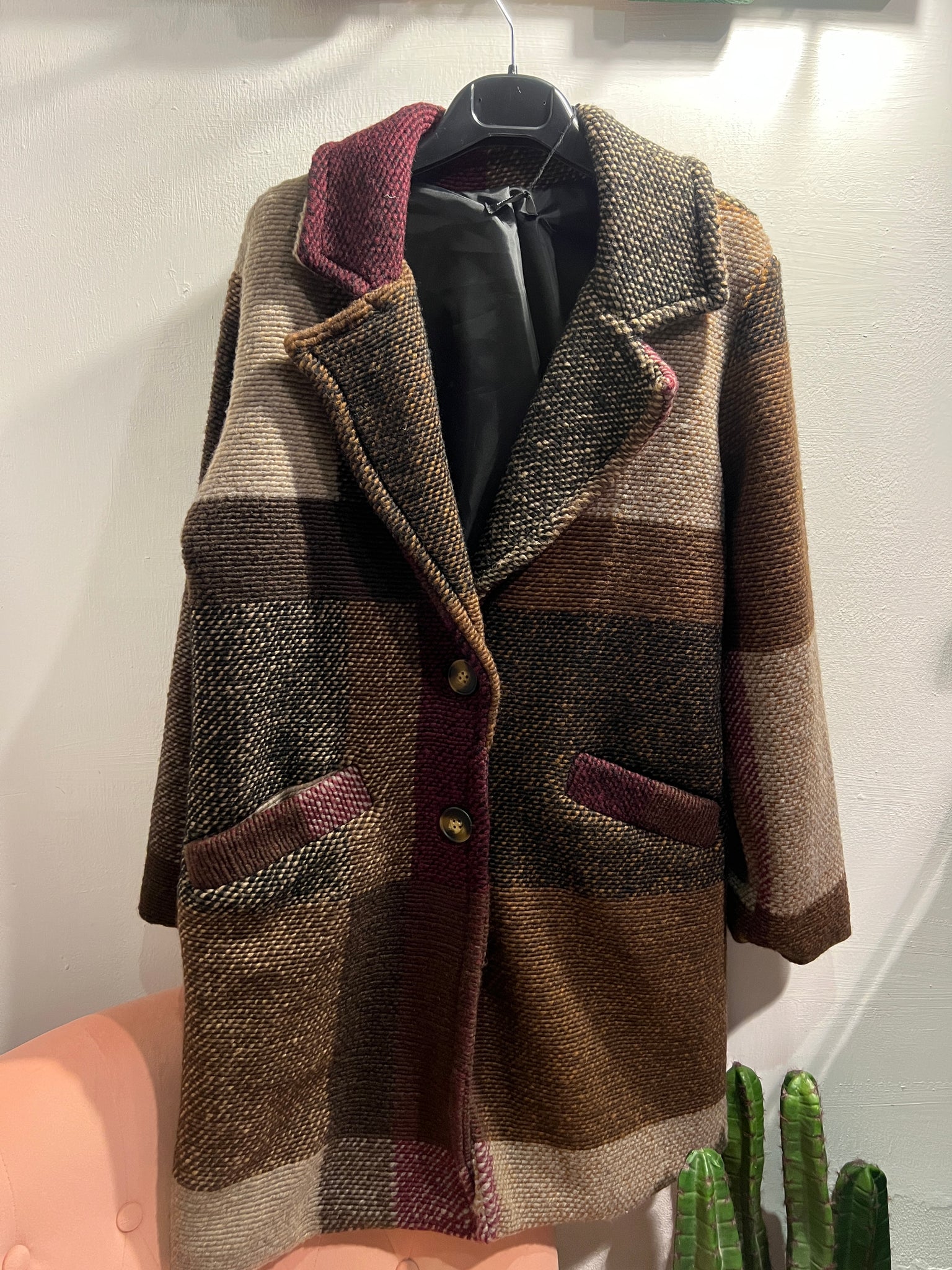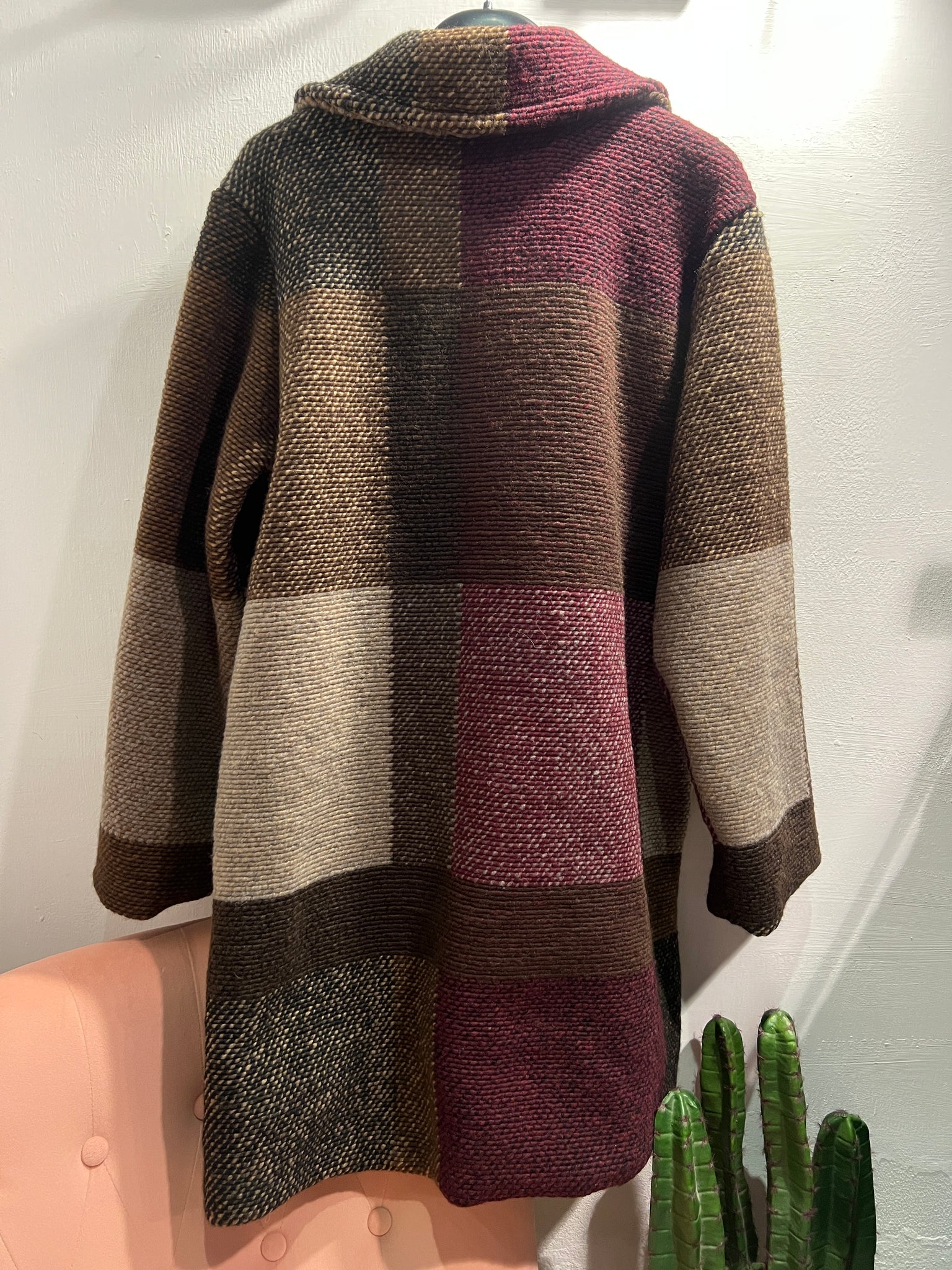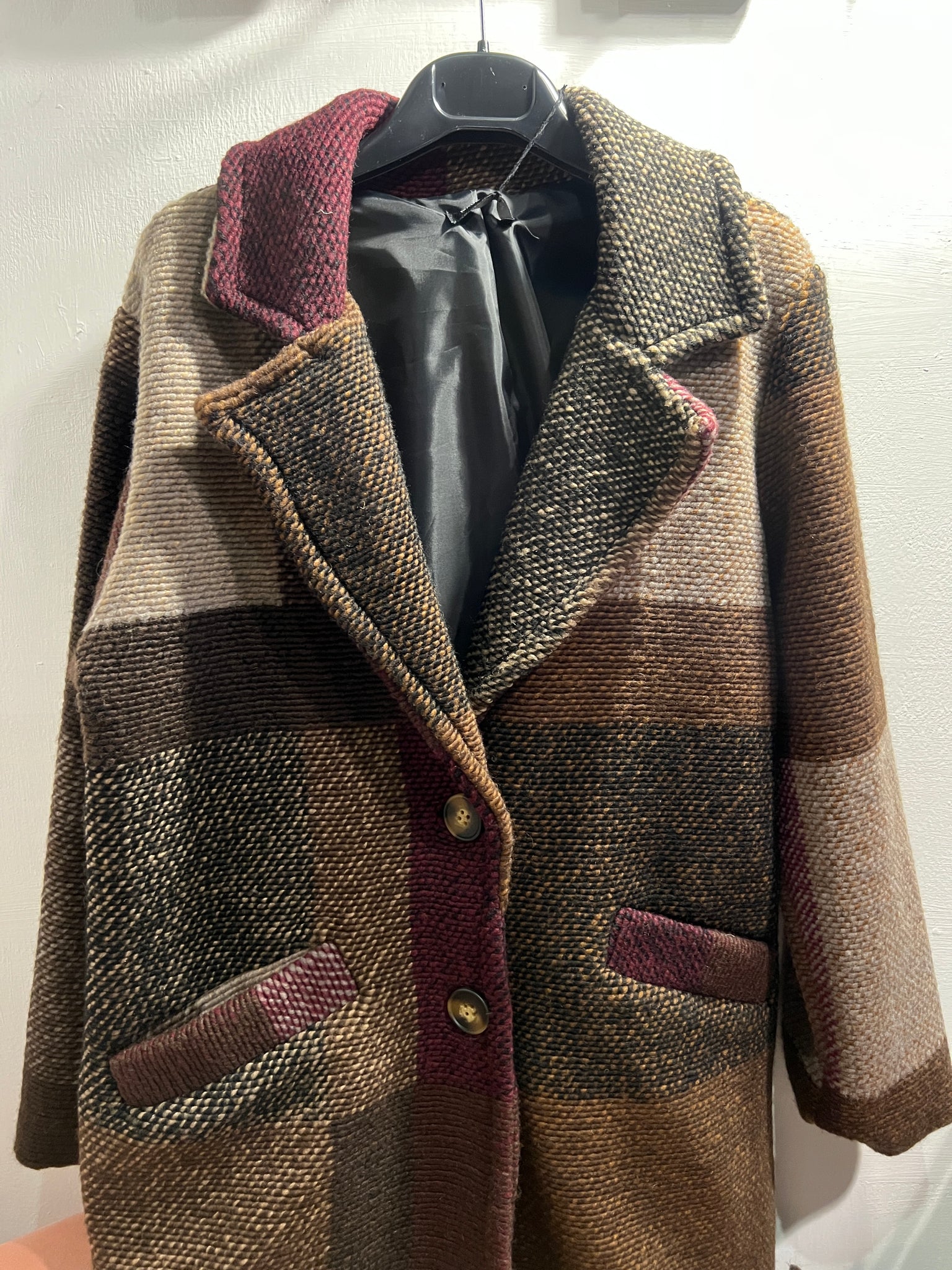 Cappotto in lana a fantasia. Fodera interna, chiusura con bottoni. taglia unica