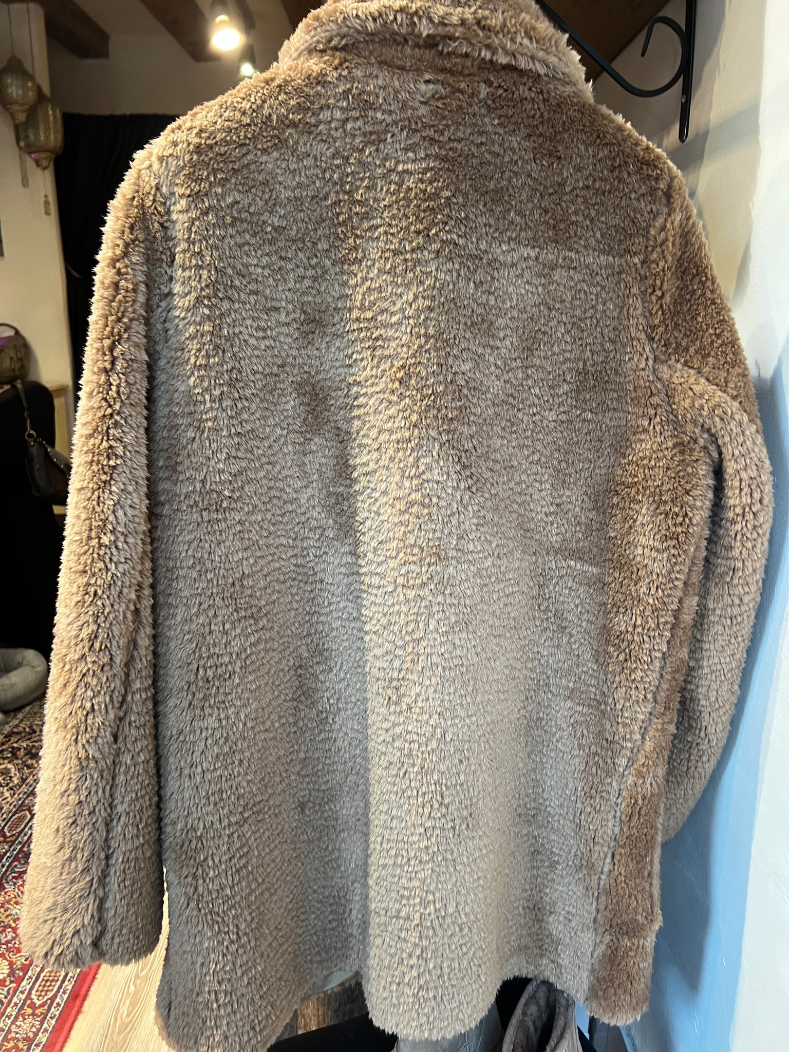 Cappotto tipo orsetto con chiusura doppiopetto, tasche esterne. 100% poliestere