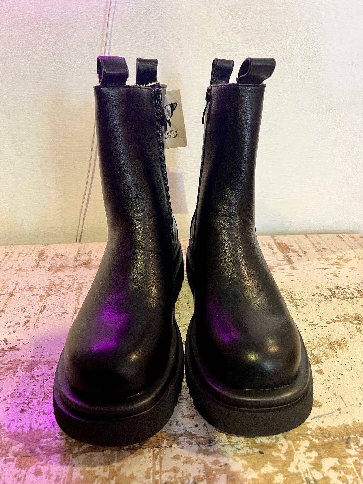 Anfibi in ecopelle con elastico laterale e chiusura con cerniera. Suola in gomma alta.